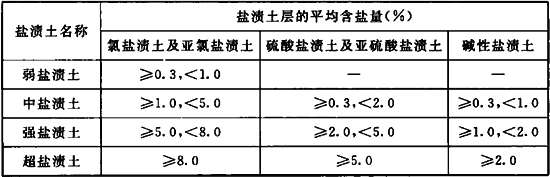 3.0.4 鹽漬土按含鹽量分類時,應符合表3.0.4的規(guī)定。
