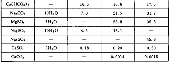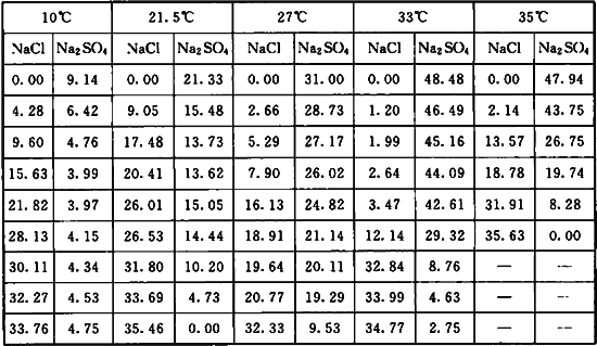 表A.0.4-2 不同溫度下Na2SO4在不同濃度的NaCl水溶液中的溶解度(g/100g水)