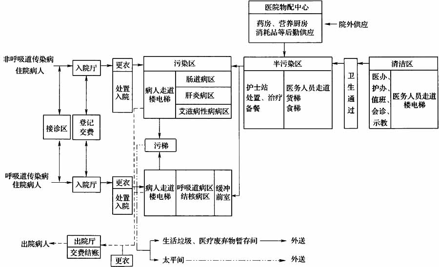 1.0.3 傳染病醫(yī)院的建筑設(shè)計,應(yīng)遵照控制傳染源、切斷傳染鏈、隔離易感人群的基本原則,并應(yīng)滿足傳染病醫(yī)院的醫(yī)療流程。