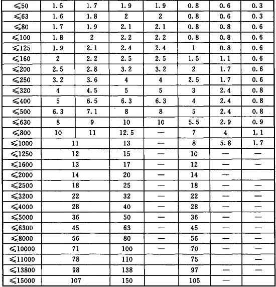 注:1 對于1000V及以下的工作電壓,實際工作電壓可超過表中規(guī)定數(shù)值的10%;