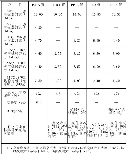 表D.0.1 塑料加熱管的物理力學(xué)性能