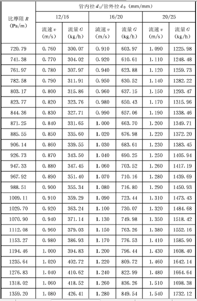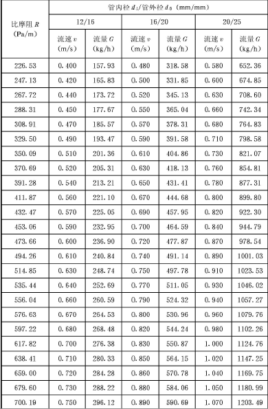 表C.0.1 塑料管及鋁塑復(fù)合管水力計(jì)算表