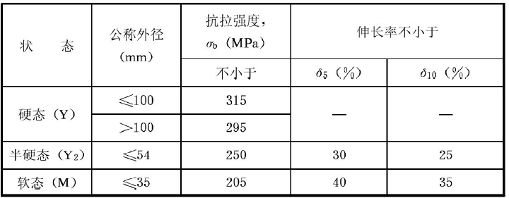 表D.0.3 銅管機(jī)械性能要求