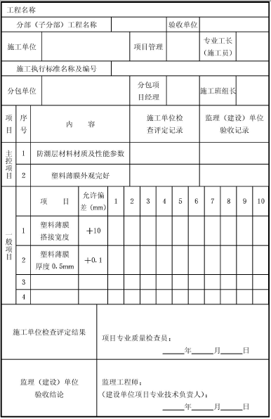 表F.0.3 防潮層安裝工程質(zhì)量檢驗(yàn)表