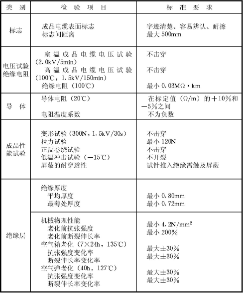 E.0.1 發(fā)熱電纜的電氣和機(jī)械性能應(yīng)符合表E.0.1的要求。