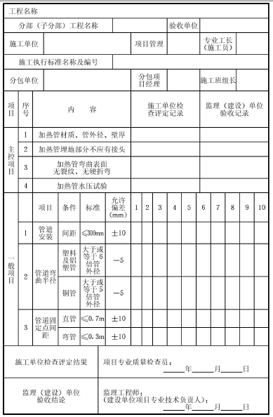 表F.0.6 加熱管安裝工程質(zhì)量檢驗(yàn)表