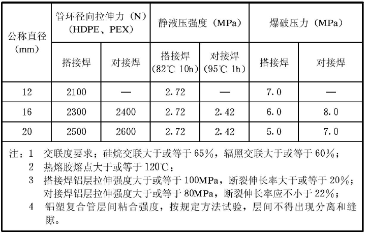 表D.0.2 鋁塑復(fù)合管的物理力學(xué)性能