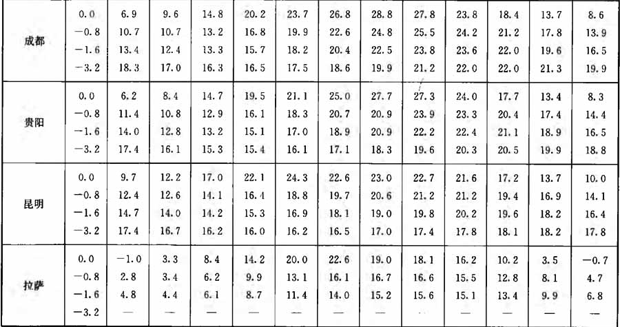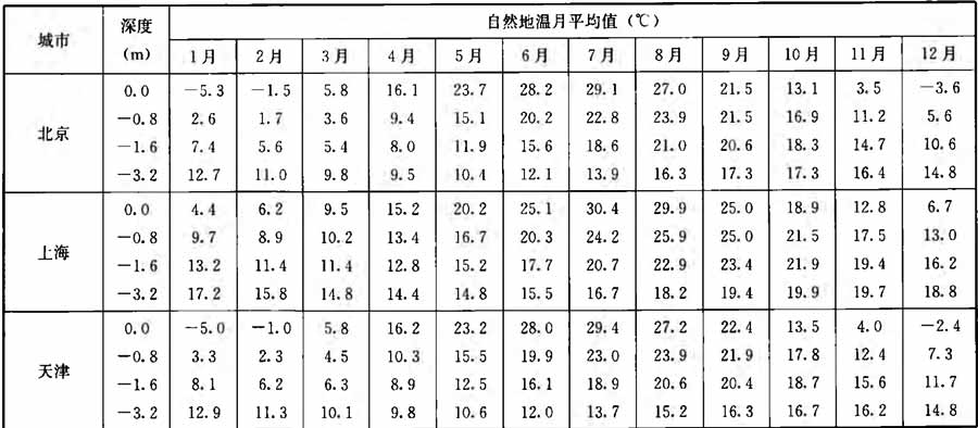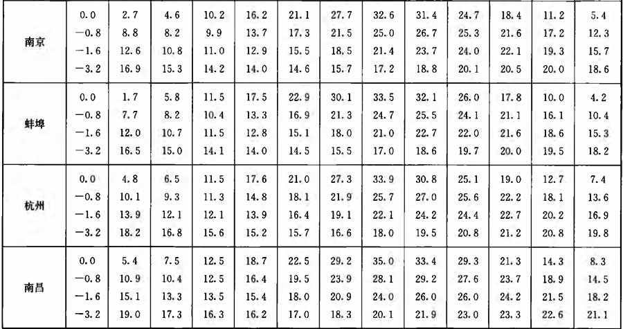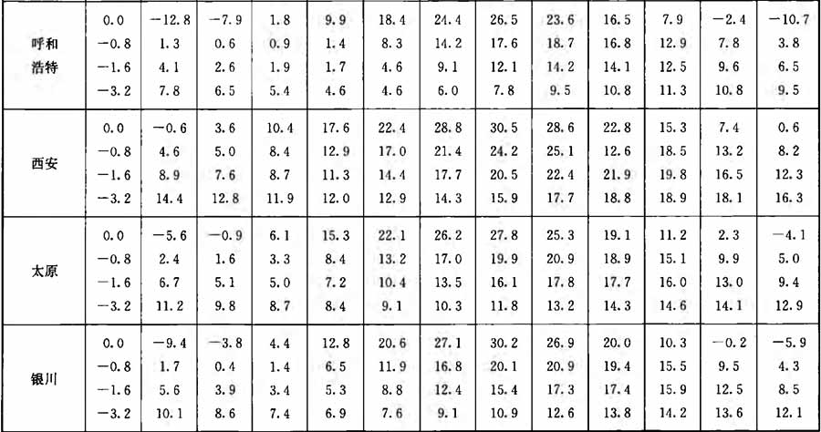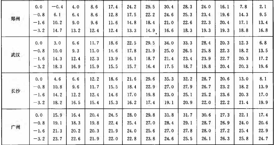 附錄A 全國主要城市實測地溫(深度0.0m~3.2m)月平均值