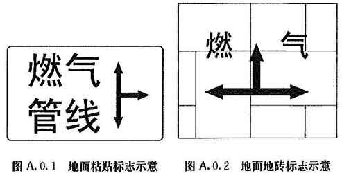 3.0.3 專用標(biāo)志應(yīng)能明確表達(dá)燃?xì)庠O(shè)施特有的信息,可包含圖形符號、文字和管道定位裝置等。專用標(biāo)志可分為燃?xì)廨斉涔芫€標(biāo)志、燃?xì)庠O(shè)施名稱標(biāo)志和燃?xì)鈴S站內(nèi)地上工藝管道標(biāo)志3種類型。