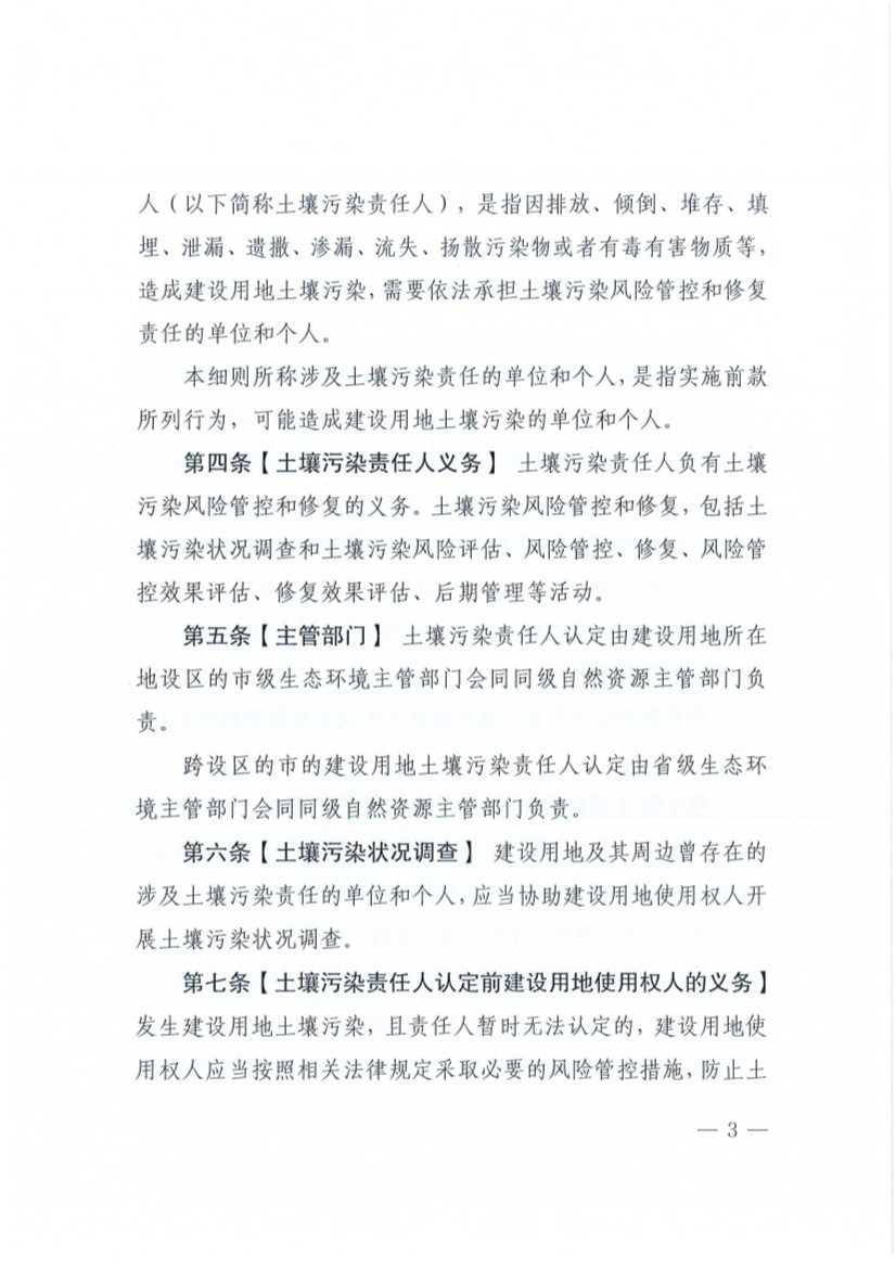 為進(jìn)一步規(guī)范建設(shè)用地土壤污染責(zé)任人的責(zé)任認(rèn)定,保障我省建設(shè)用地土壤污染責(zé)任人認(rèn)定工作順利開展,依據(jù)《中華人民共和國土壤污染防治法》《建設(shè)用地土壤污染責(zé)任人認(rèn)定暫行辦法》等規(guī)定,省生態(tài)環(huán)境廳會(huì)同省自然資源廳制定了《安徽省建設(shè)用地土壤污染責(zé)任人認(rèn)定實(shí)施細(xì)則》?,F(xiàn)印發(fā)給你們,請遵照執(zhí)行。
