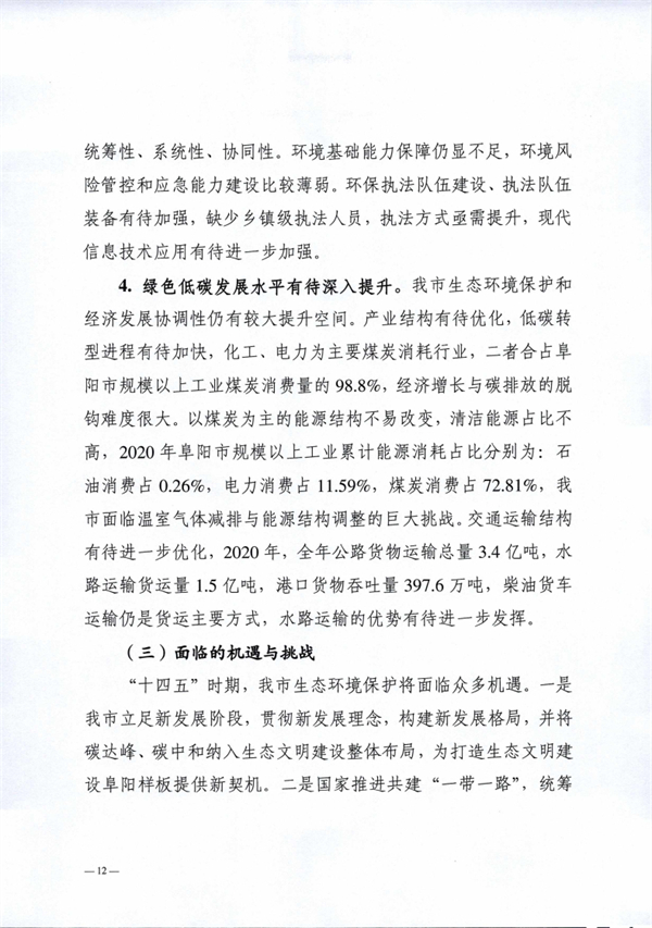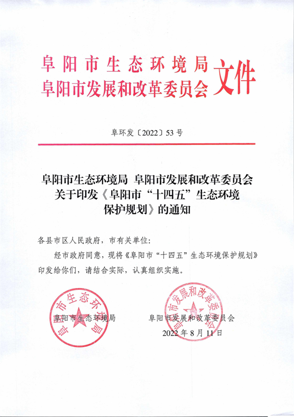 《阜陽市“十四五”生態(tài)環(huán)境保護規(guī)劃》印發(fā)