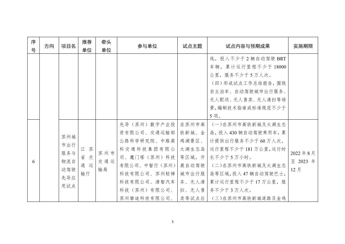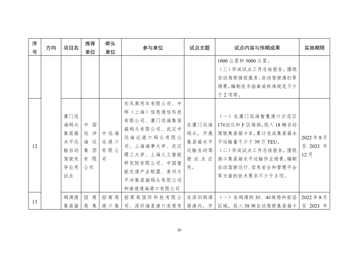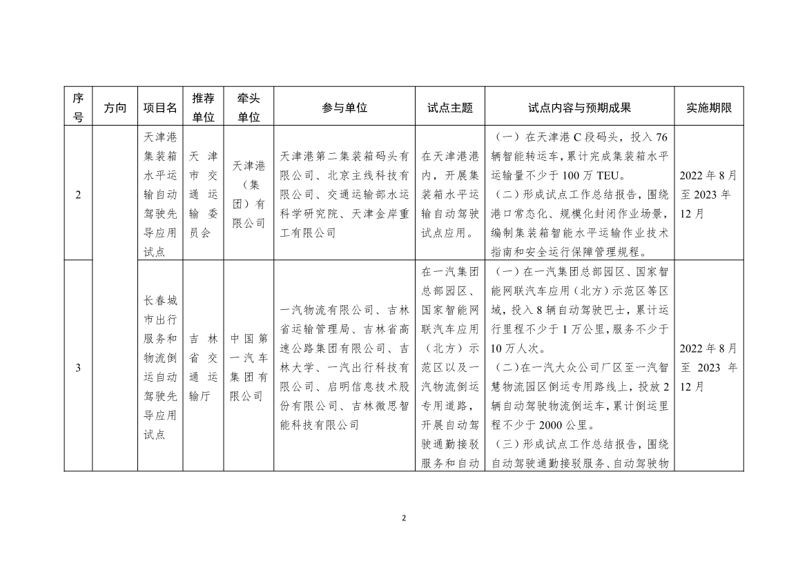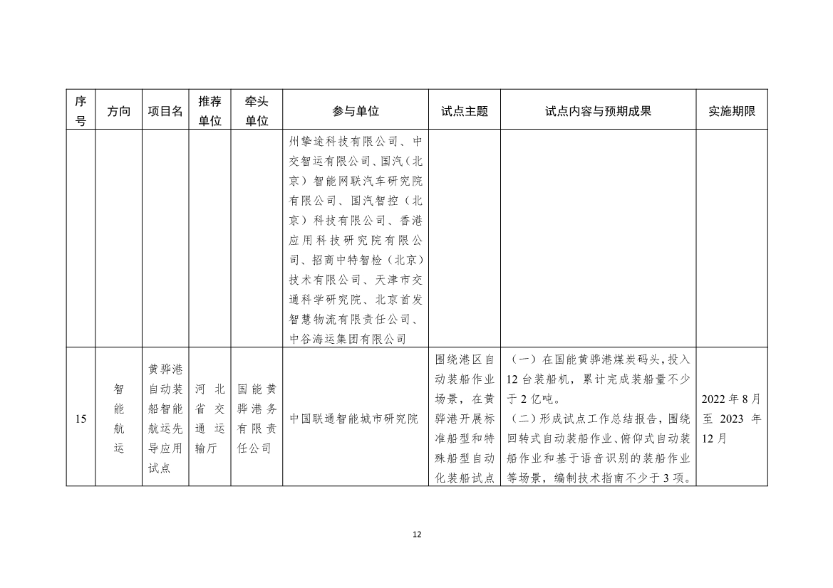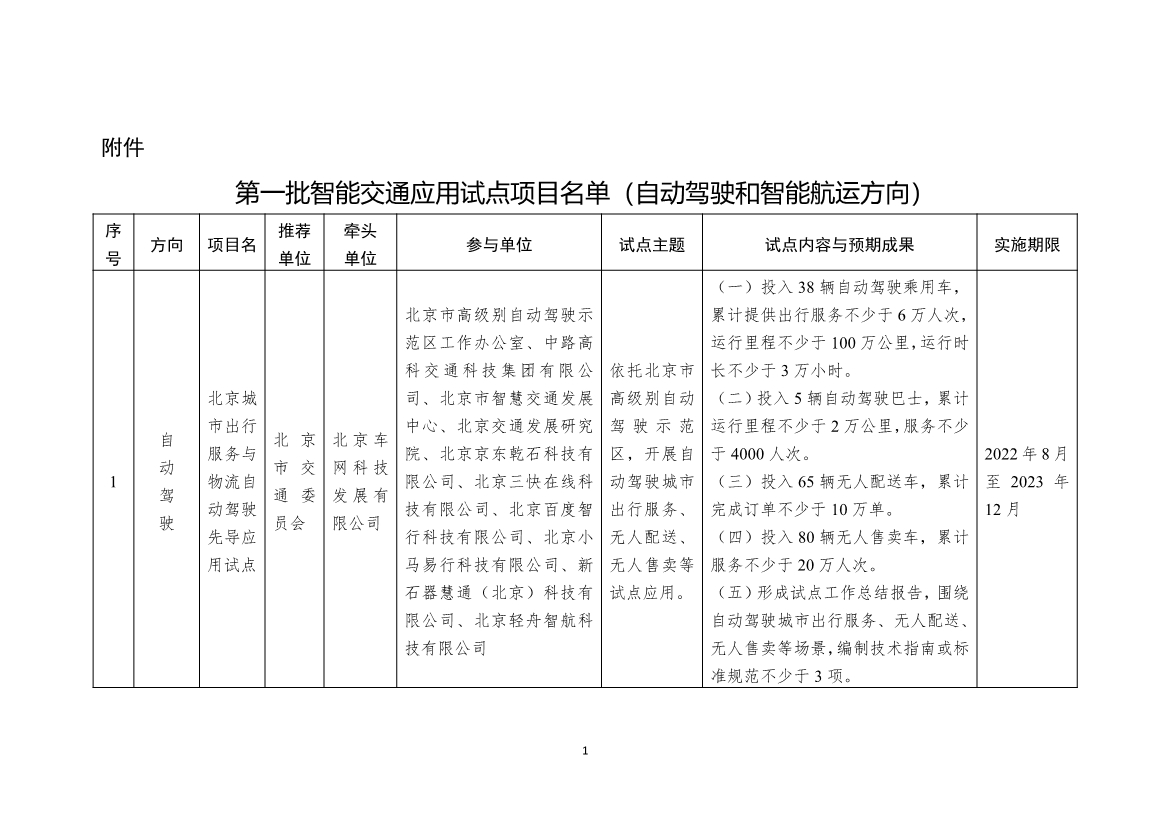 附件:第一批智能交通先導應用試點項目名單(自動駕駛和智能航運方向)