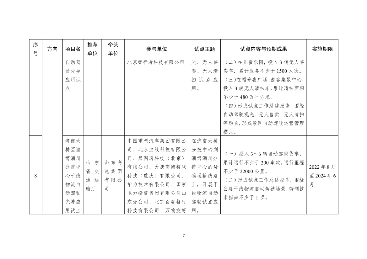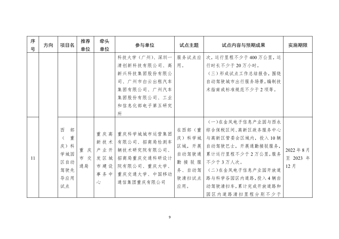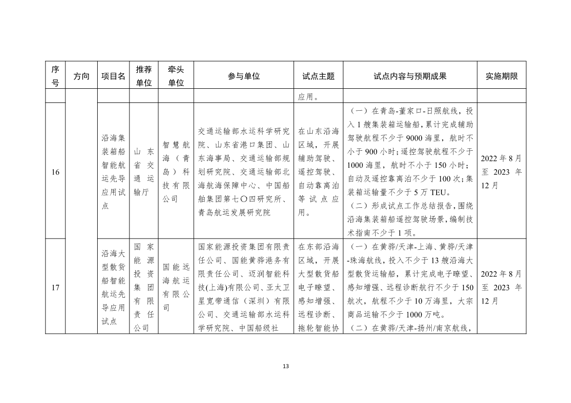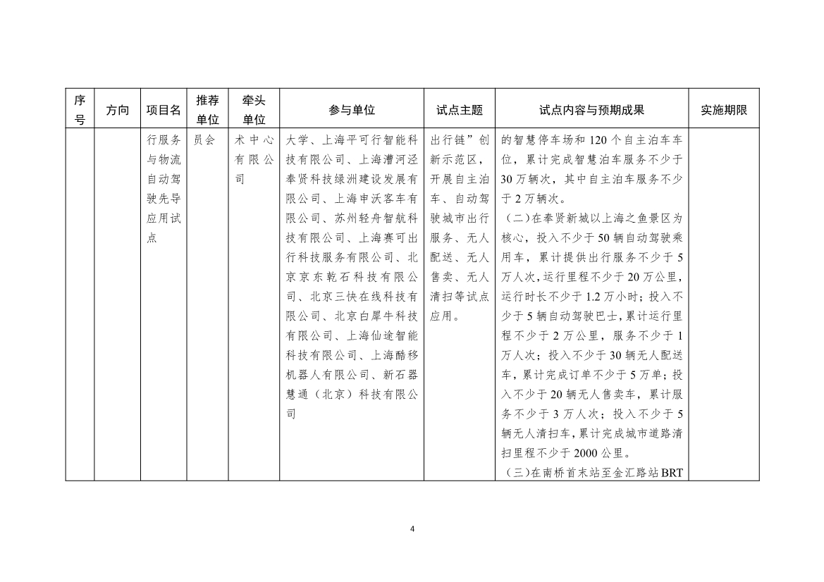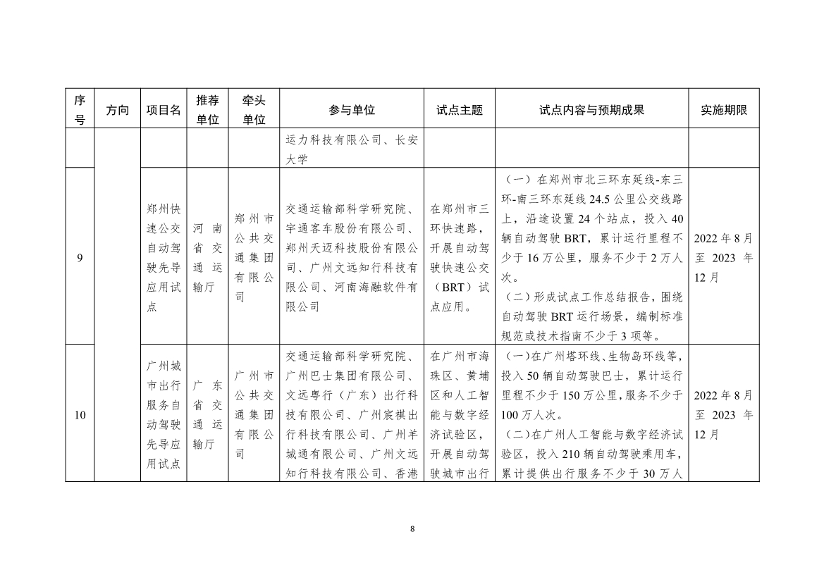 附件:第一批智能交通先導應用試點項目名單(自動駕駛和智能航運方向)