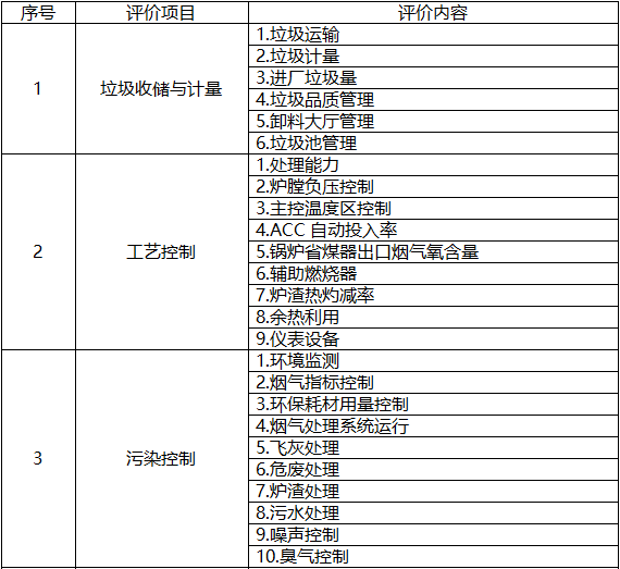 附表1 垃圾焚燒處理設(shè)施運行評價內(nèi)容