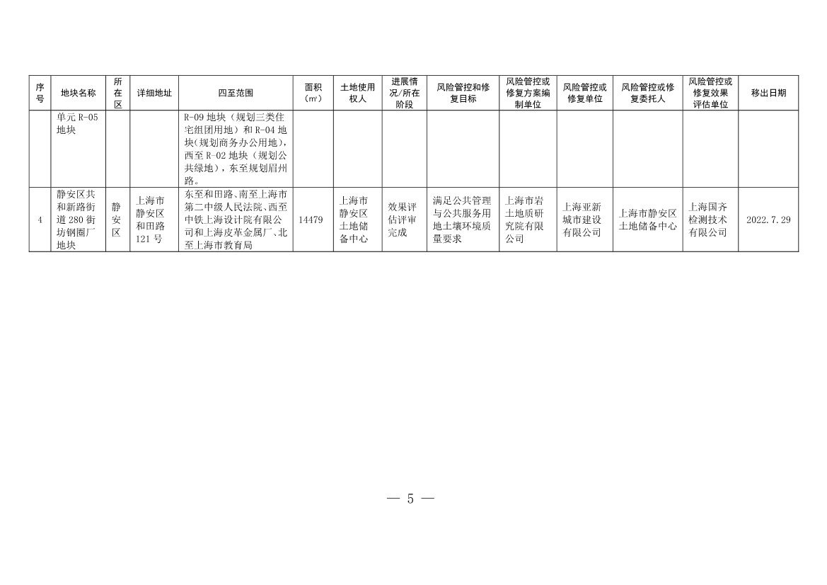 附件:1. 上海市建設(shè)用地土壤污染風(fēng)險(xiǎn)管控和修復(fù)名錄(2022年6月1日至2022年7月31日移出地塊名錄)