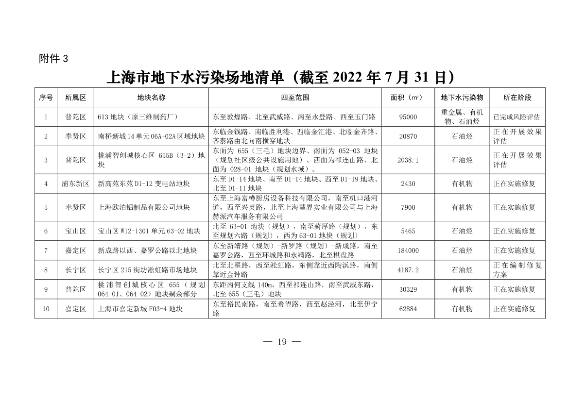 3. 上海市地下水污染場(chǎng)地清單(截至2022年7月31日)