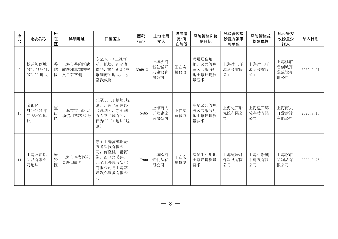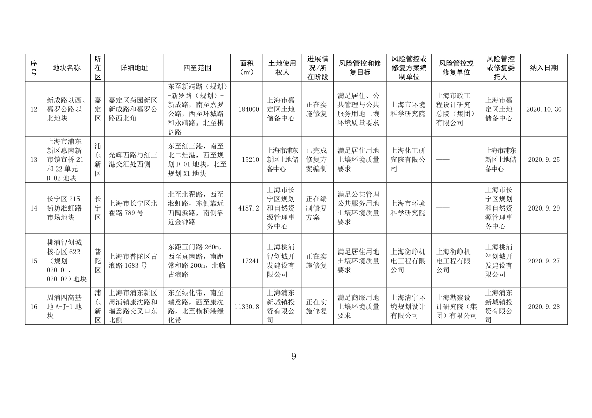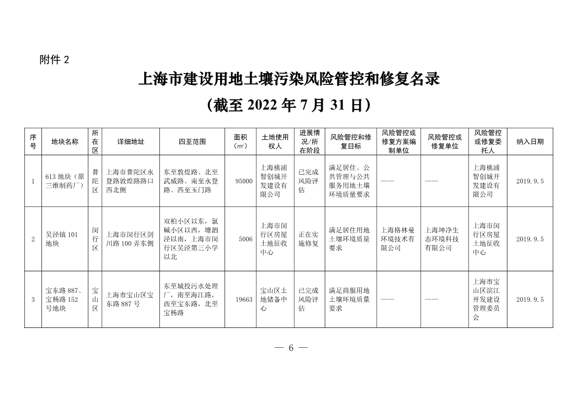 2. 上海市建設(shè)用地土壤污染風(fēng)險(xiǎn)管控和修復(fù)名錄(截至2022年7月31日)