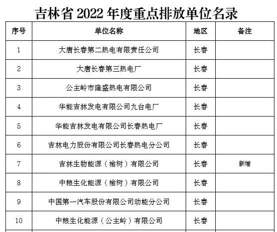 按照生態(tài)環(huán)境部《關(guān)于做好2022年企業(yè)溫室氣體排放報(bào)告管理相關(guān)重點(diǎn)工作的通知》(環(huán)辦氣候〔2022〕111號(hào))要求,吉林省2022年度重點(diǎn)排放單位名錄已確定,現(xiàn)予公示。