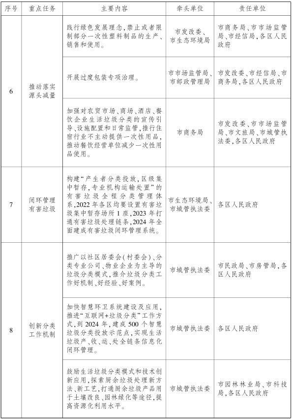 (二)強(qiáng)化責(zé)任落實(shí)。各牽頭單位要會(huì)同各區(qū)、市直各相關(guān)部門和單位按照工作任務(wù)清單(附后)抓好工作落實(shí)。各區(qū)、市直各相關(guān)部門和單位要結(jié)合工作職責(zé),編制本區(qū)、本部門和單位3年行動(dòng)方案,建立相應(yīng)的組織協(xié)調(diào)和工作機(jī)制,確保生活垃圾分類各項(xiàng)任務(wù)落地見效。