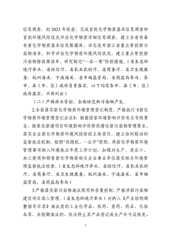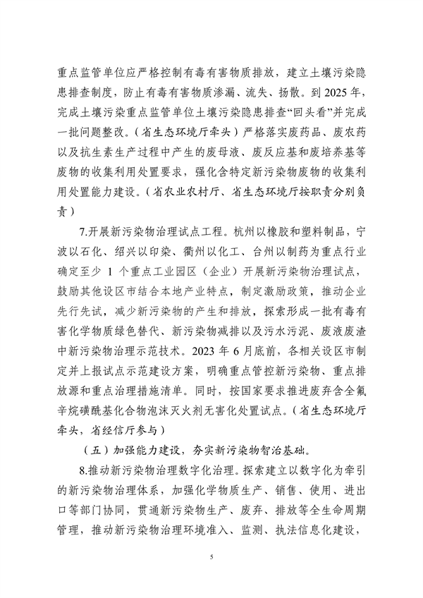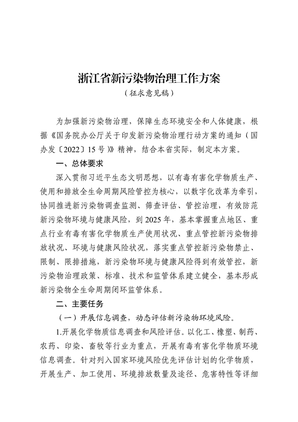 浙江省新污染物治理工作方案(征求意見稿)