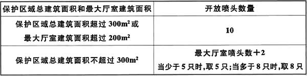 表12.0.3 采用標(biāo)準(zhǔn)覆蓋面積灑水噴頭時作用面積內(nèi)開放噴頭數(shù)量