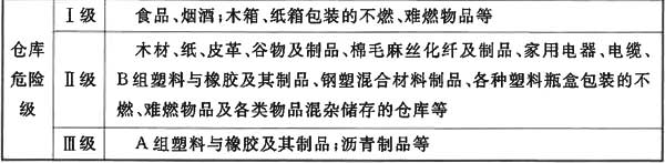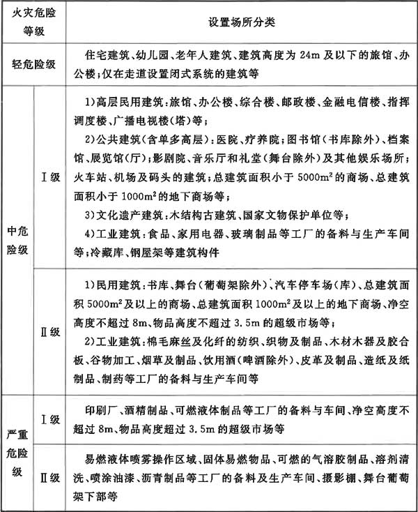 表A 設(shè)置場所火災(zāi)危險等級分類