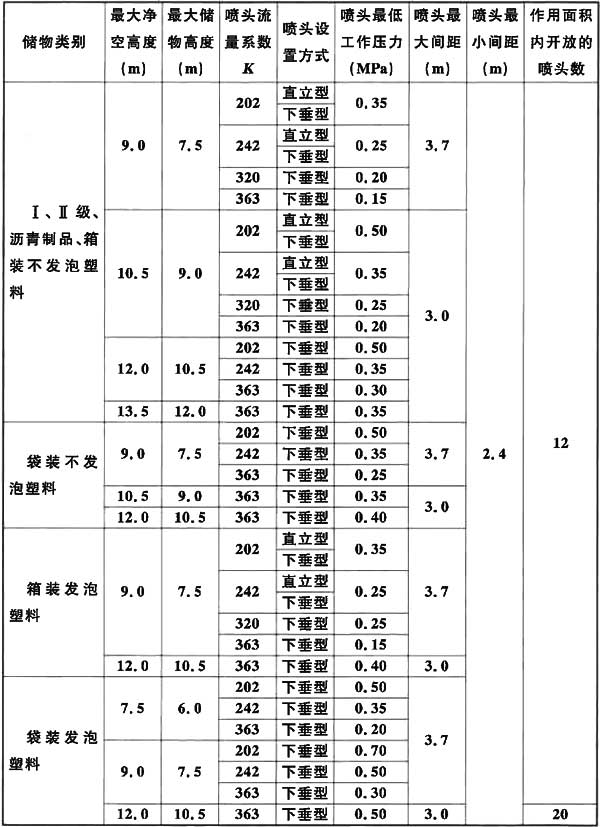 5.0.4 倉庫及類似場所采用濕式系統(tǒng)的設(shè)計基本參數(shù)應(yīng)符合下列要求: