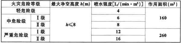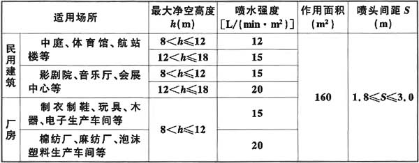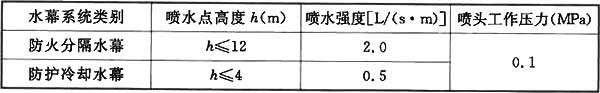 注:1 作用面積不應(yīng)小于200m2,持續(xù)噴水時間不應(yīng)低于2h。