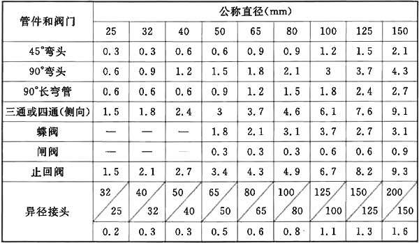 2 當(dāng)異徑接頭的出口直徑不變而入口直徑提高1級時,其當(dāng)量長度應(yīng)增大0.5倍;提高2級或2級以上時,其當(dāng)量長度應(yīng)增大1.0倍;