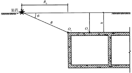 R——爆心到土中結(jié)構(gòu)外墻頂點(diǎn)O1(圖B.0.3)的距離(m);