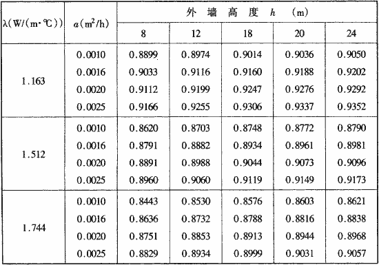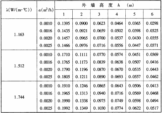 Θdb——地表面溫度年周期性波動(dòng)引起的側(cè)壁面溫度參數(shù),根據(jù)土壤的λ和α(壁面導(dǎo)溫系數(shù))以及建筑物高度h查表G.0.1-2;