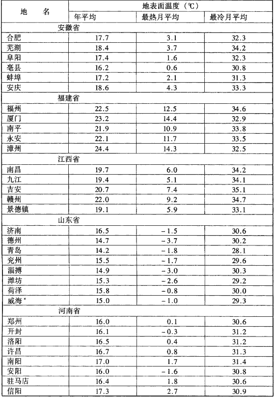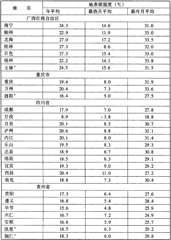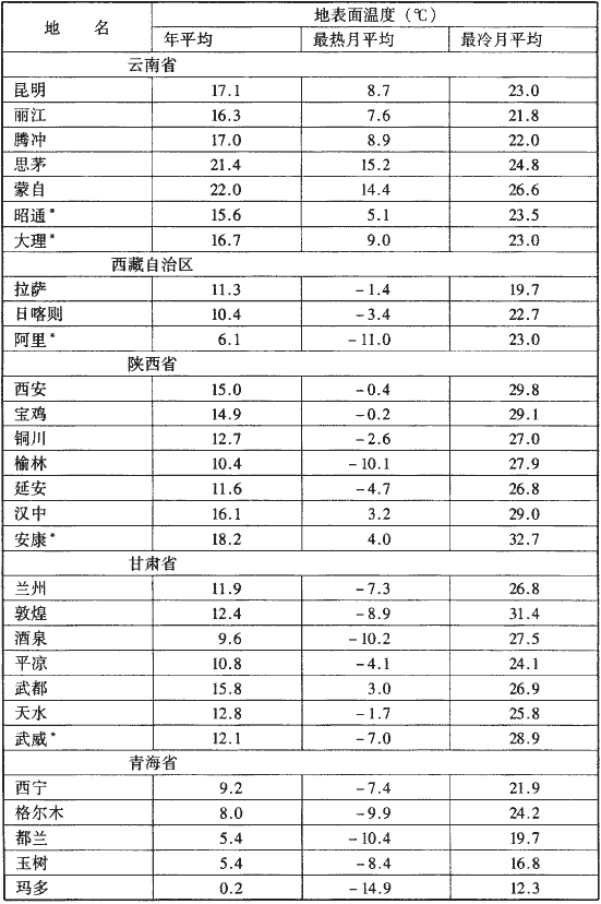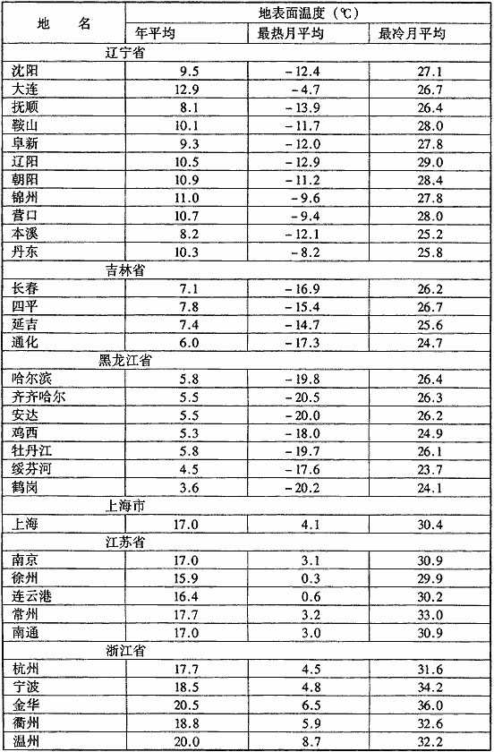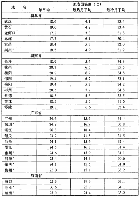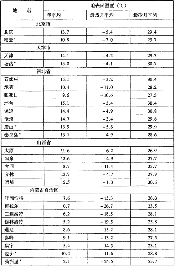 注:帶*者為新增城市,其室外計(jì)算參數(shù)統(tǒng)計(jì)年份為1992年至2001年。