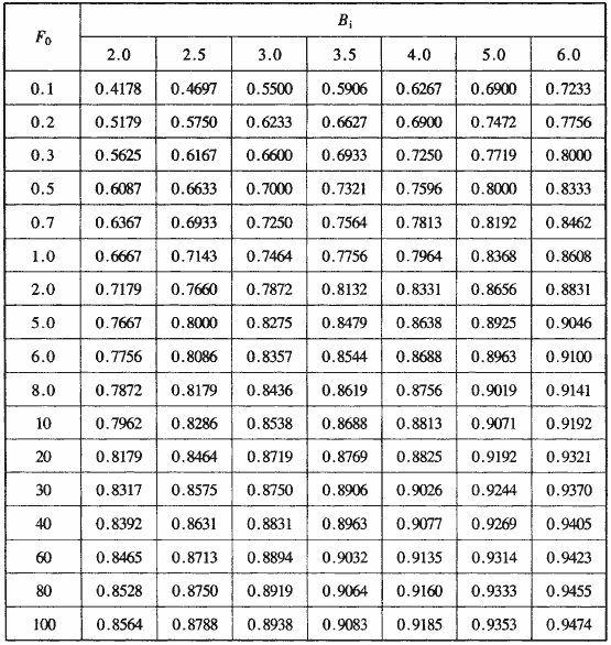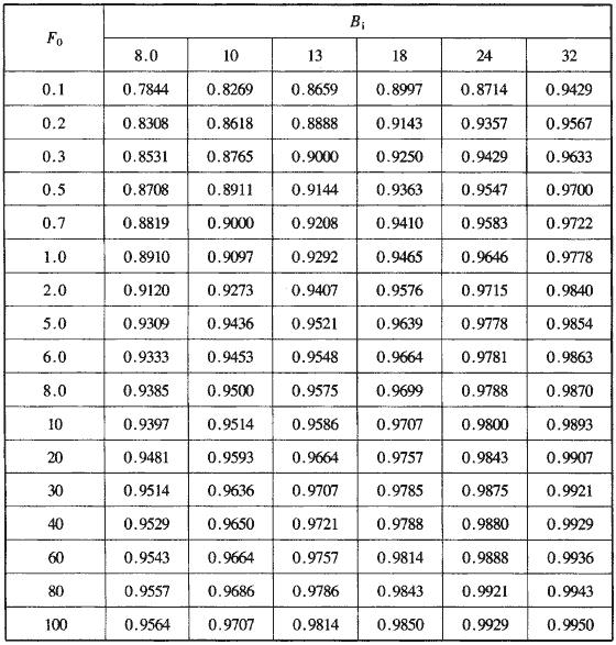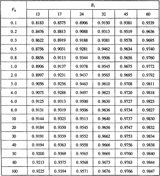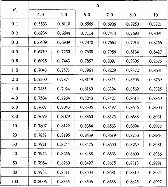 f(F0,Bi)——壁面恒溫傳熱計(jì)算參數(shù),根據(jù)準(zhǔn)數(shù)F0=ατ/r02、Bi=αr0/λ值,查表H.0.1-1或H.0.1-2確定。