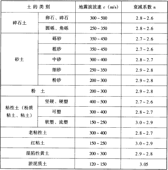 n——土的衰減系數(shù),可按表8.0.2-1、表8.0.2-2采用。