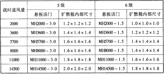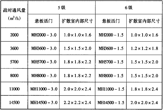 注:本表適用于采用國家建筑標(biāo)準(zhǔn)設(shè)計(jì)《防空地下室建筑設(shè)計(jì)》(04FJ03)圖集中的MH系列懸板活門。