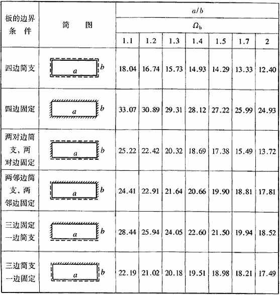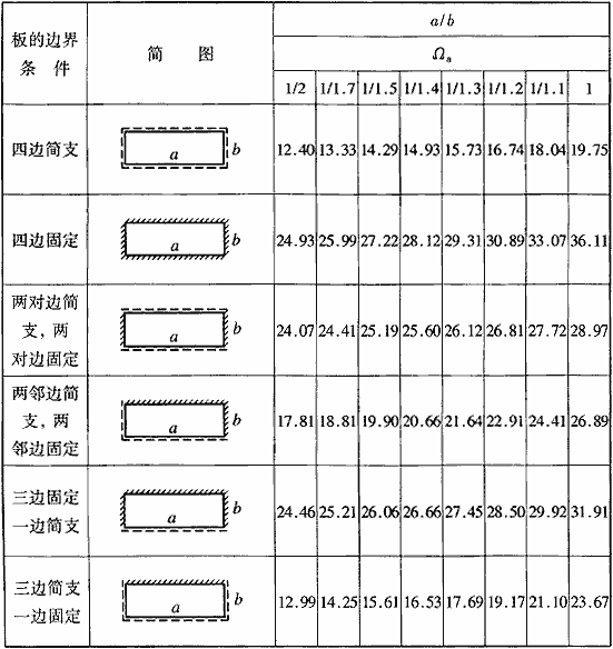 表C.0.2 矩形薄板自振圓頻率系數(shù)Ωa或Ωb