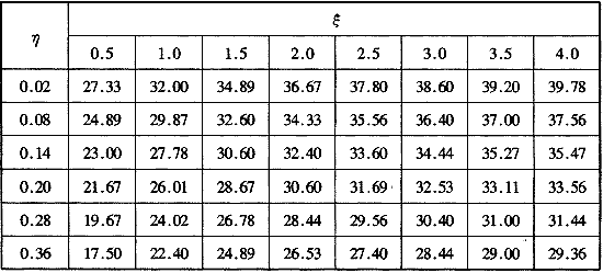 表H.0.2-1 當(dāng)量圓柱體地下建筑年周期波動(dòng)傳熱計(jì)算參數(shù)f(ξ,η)