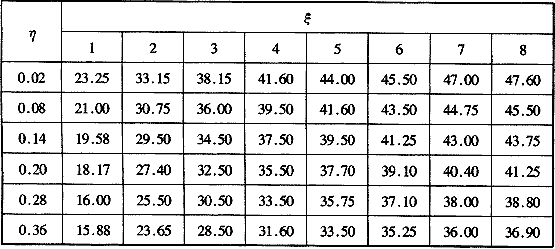 表H.0.2-4 當(dāng)量球體地下建筑年周期波動(dòng)傳熱超前角度β(ξ,η)