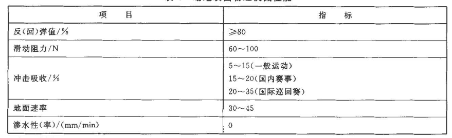 場地表面物理機(jī)械性能應(yīng)符合表1規(guī)定。