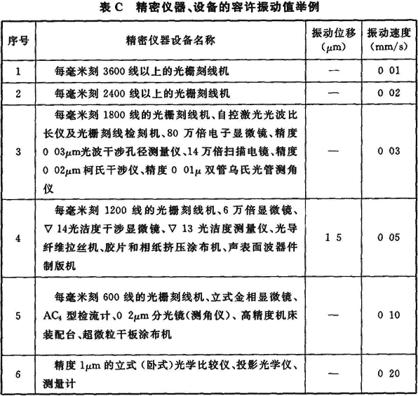 附錄C 精密儀器、設(shè)備的容許振動值舉例