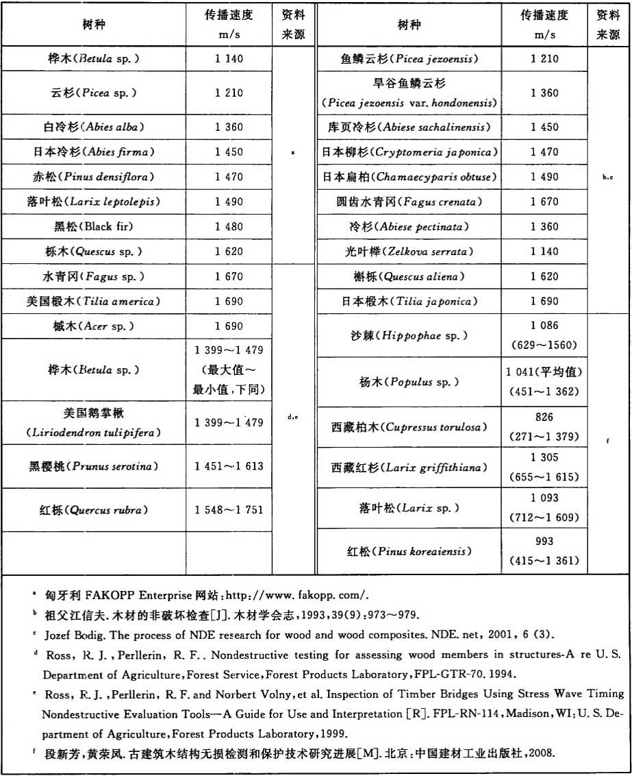表B.1 健康材的徑向應力波傳播速度參考值