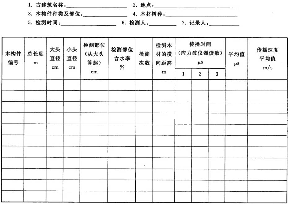 表A.1 古建筑木構件內部腐朽應力波無損檢測記錄表