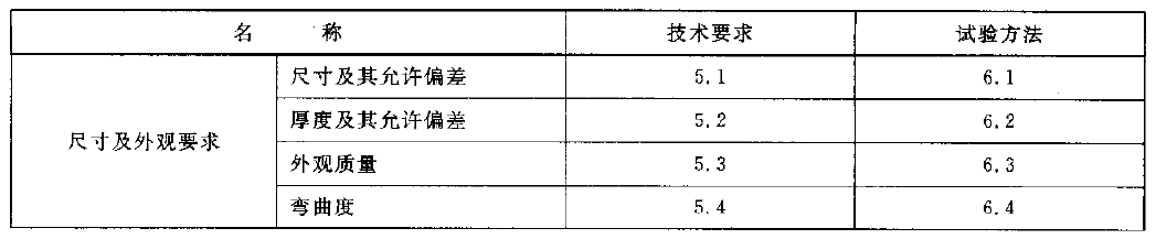 表1 技術(shù)要求及試驗(yàn)方法條款