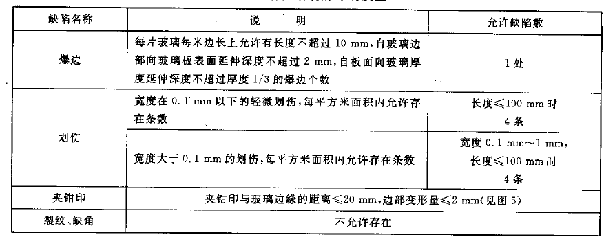 鋼化玻璃的外觀質(zhì)量應(yīng)滿足表6的要求。