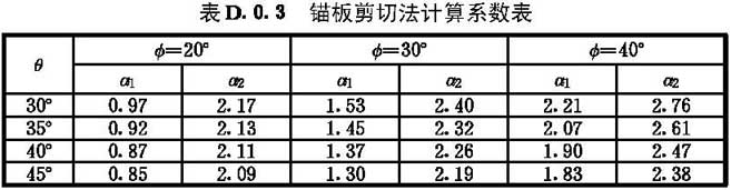 α1、α2——與錨板正反面土壓力及θ有關(guān)的系數(shù),見表D.0.3。