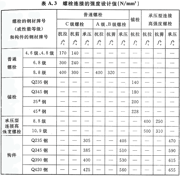 5 摩擦型高強(qiáng)螺栓連接的強(qiáng)度設(shè)計值參照現(xiàn)行國家標(biāo)準(zhǔn)《鋼結(jié)構(gòu)設(shè)計規(guī)范》GB 50017。
