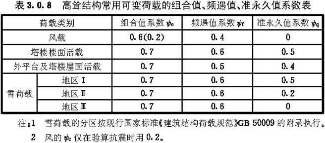3.0.9 高聳結(jié)構(gòu)按正常使用極限狀態(tài)設(shè)計時可變荷載代表值可按表3.0.9選取: