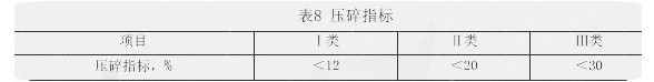 再生粗骨料的壓碎指標(biāo)值應(yīng)符合表8的規(guī)定。