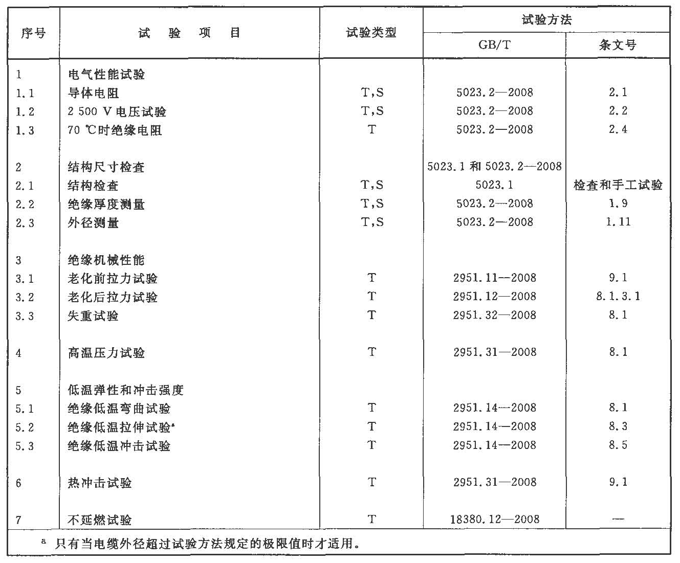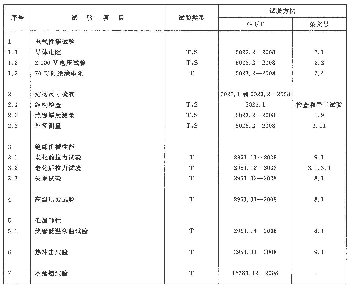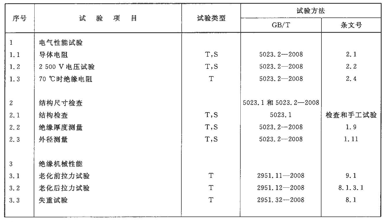 表10 60227 IEC 07(BV-90)型電纜的試驗項目