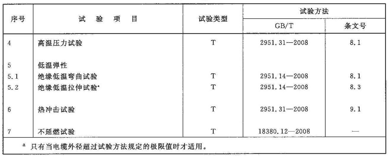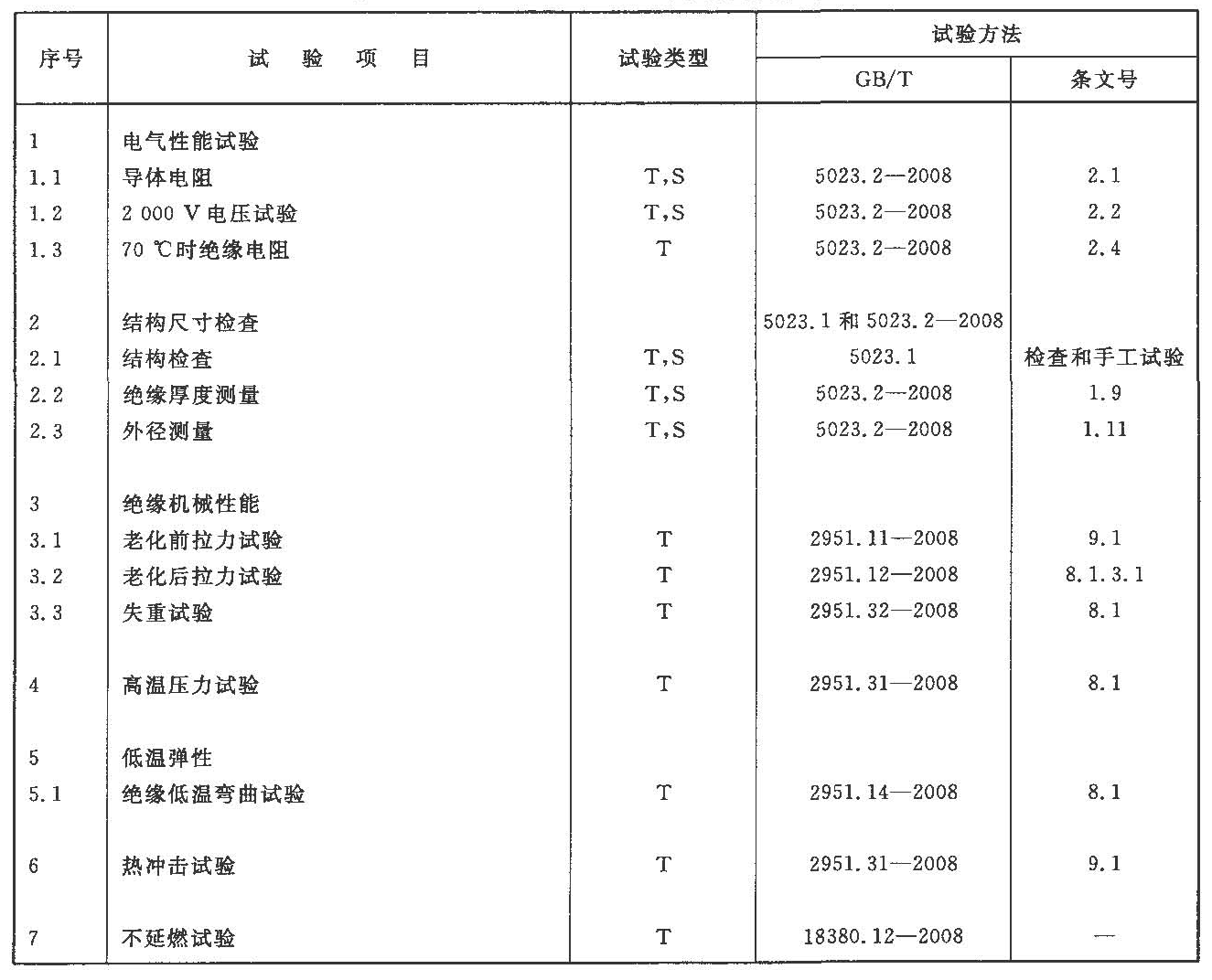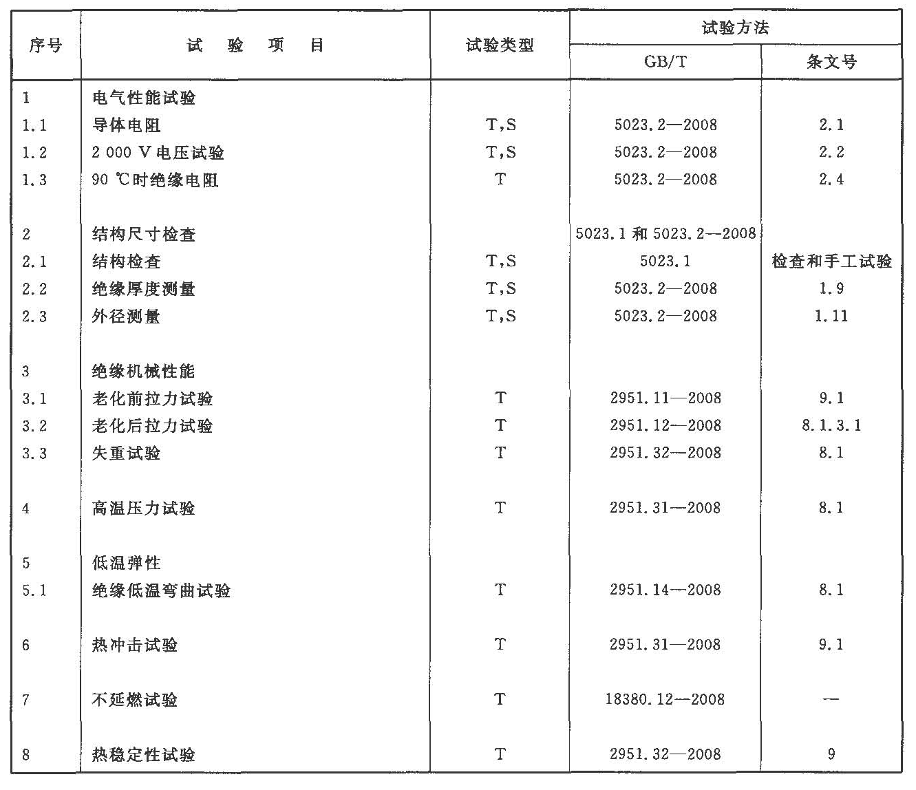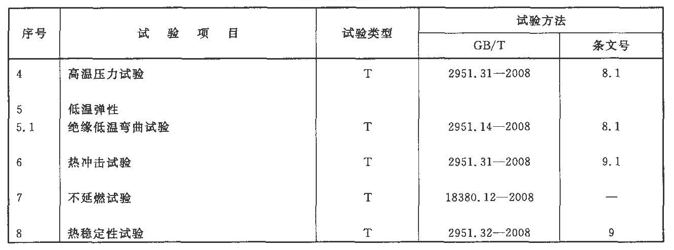 表12 60227 IEC 08(RV-90)型電纜的試驗項目
